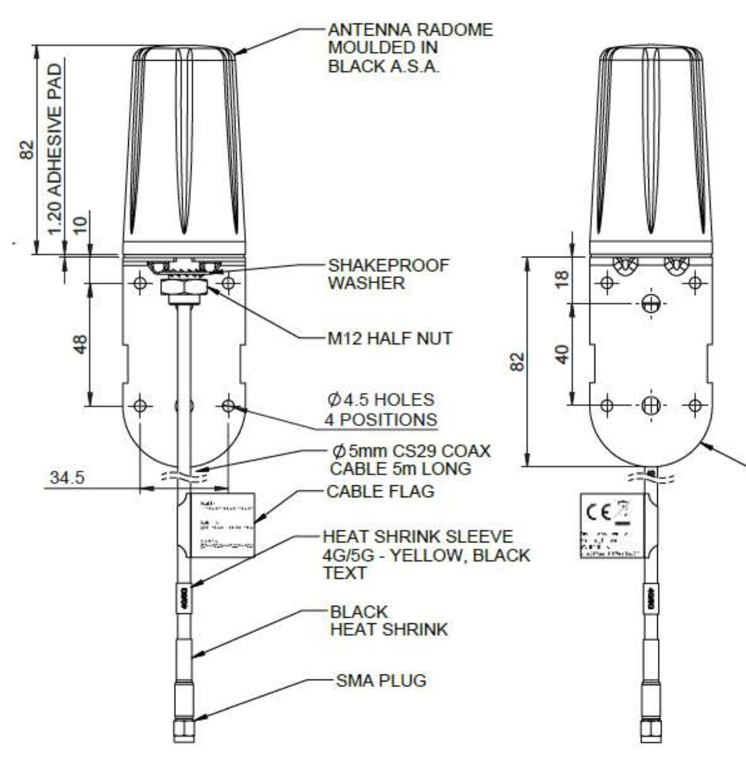 B4BE-6-60-5SP 4G/5G BRACKET MOUNT ANTENNA 617-960/1710-6000MHz 5m Cable SMA(m) Connector