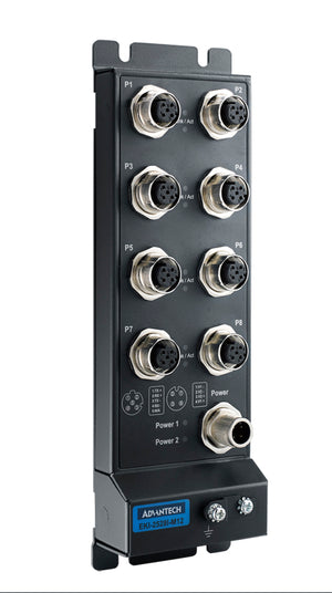 The EKI-2528I-M12 unmanaged switches are designed for application in harsh environments. First of all, the switches provide 8 Fast Ethernet ports with M12 D-coded connectors which can connect the cables tightly against vibration and shock. Second, the switches support 10/100 Mbps, auto MDI/MDI X, broadcast storm protection. Third, when supporting wide power input ranging from 12 to 48V with Polarity Reverse Protection and Overload Current Resettable Fuse, the EKI-2528I-M12 switches are robust and economical solutions for your network. Finally, as the switches are IP67-rated and is compliant with IEC 61131-2:2017, they are suitable for PLC application and their associated peripherals.